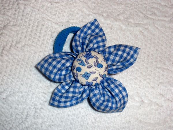 Combina los coleteros tipo Flor de tela con botón forrado con tus fulares de dos telas y personalízalos a tu gusto.